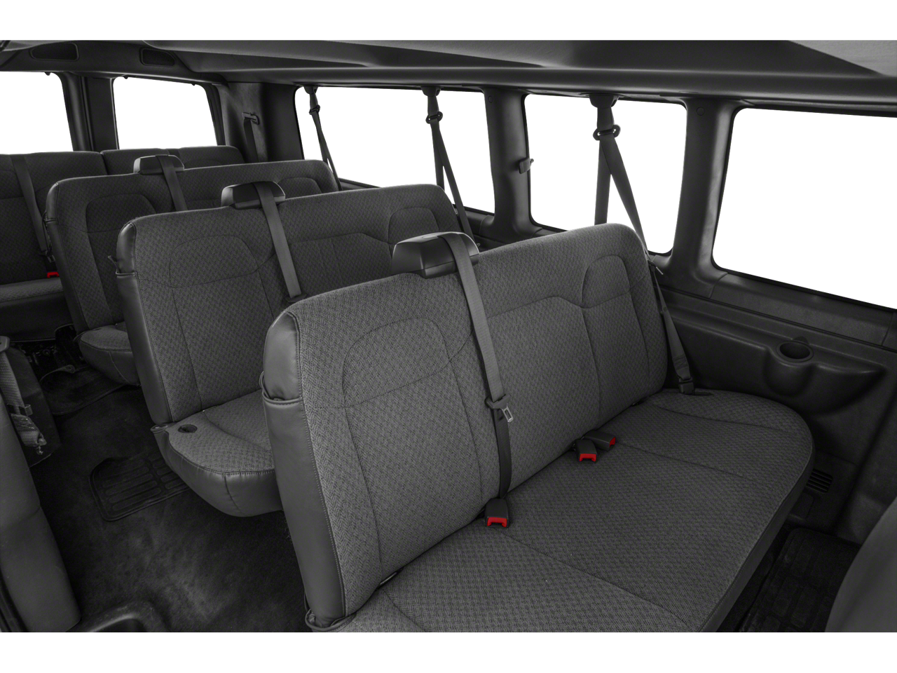 Inside, you’ll find seating for up to 15 passengers with comfortable LS-trim upholstery, thoughtful cabin layout, and large windows that keep the space open, bright, and welcoming. Rear climate control keeps everyone comfortable, and multiple cupholders and storage pockets help make long trips easier.