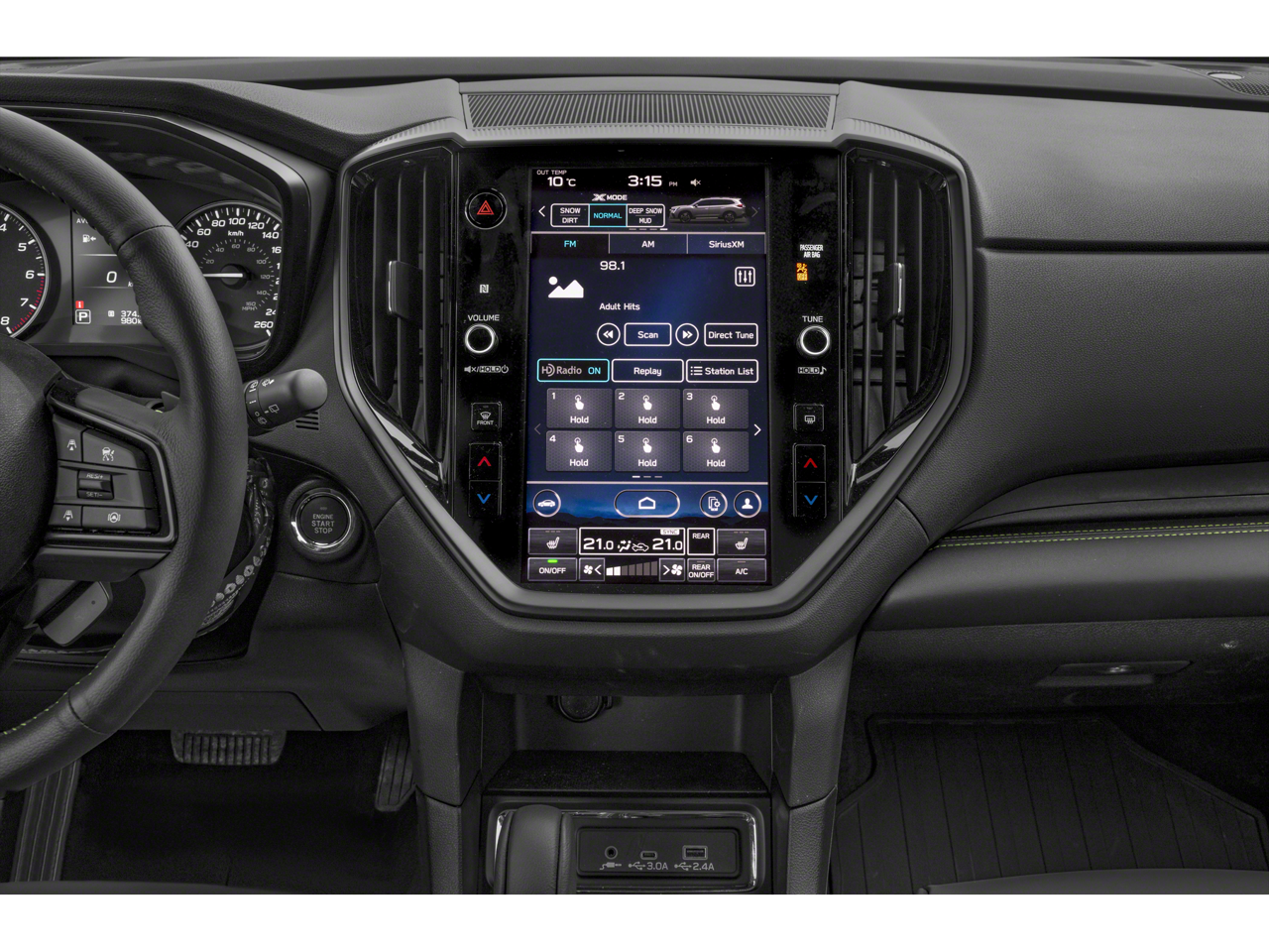 - Radio: Subaru STARLINK 11.6" Multimedia Plus System -inc: AM/FM stereo HD Radio, multi-touch gesture high resolution display screen, voice activated controls, Bluetooth® audio streaming and hands-free phone connectivity w/SMS text messaging connectivity (refer to subaru.com for cell phone compatibility), Near Field Communication (NFC), iPod control capability, SiriusXM All Access radio (4 months free trial/subscription required after), SiriusXM Travel Link (4 months free trial/subscription required after), smartphone integration for Android Auto and Apple CarPlay w/full screen view and wireless connection and STARLINK cloud applications, USB and Over The Air (OTA) audio system update, steering wheel controls for audio and Bluetooth®, 6 speakers, 3.5mm illuminated auxiliary input jack, and illuminated USB A and C input/charge ports