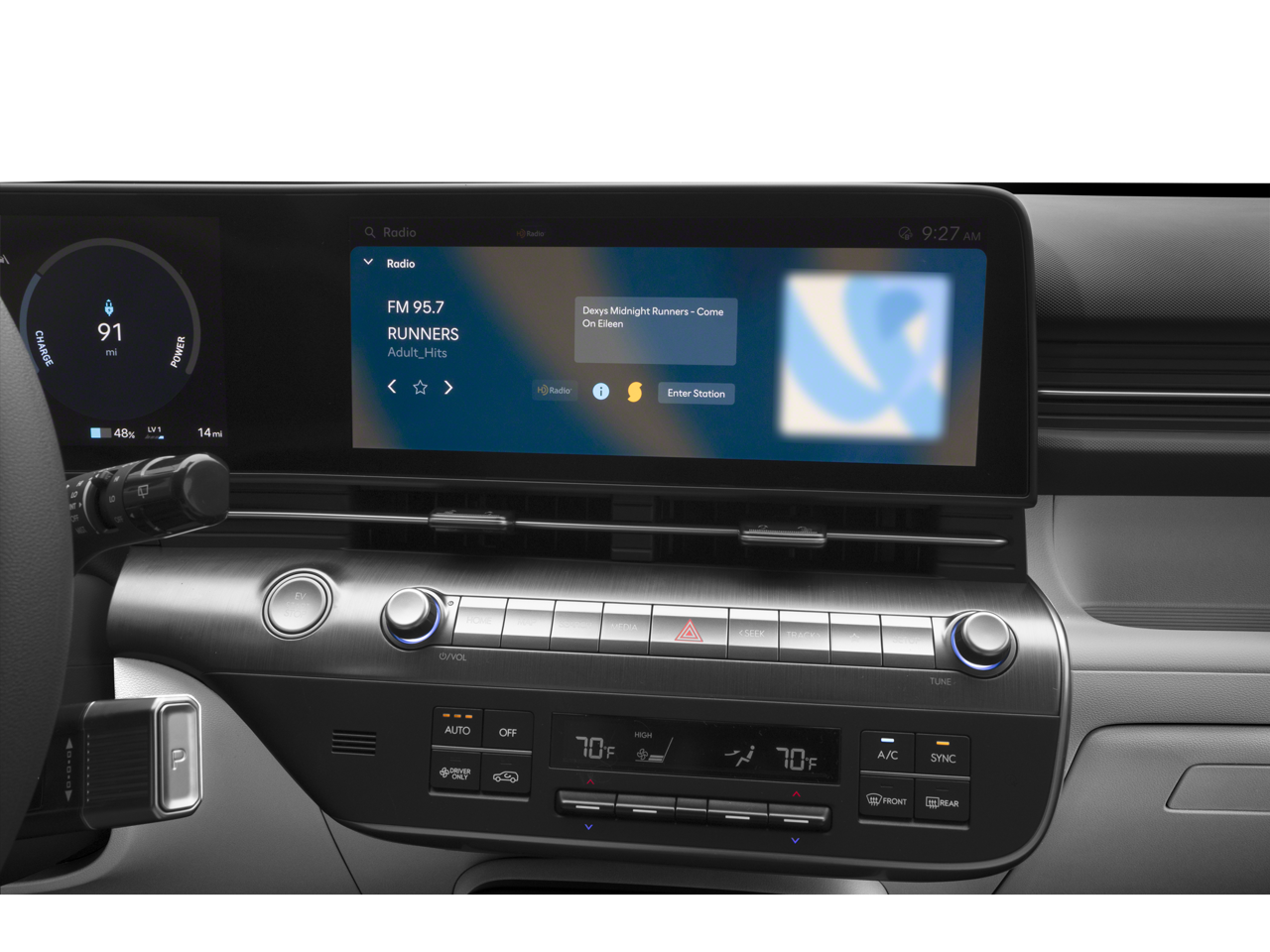 - Radio: AM/FM/HD Radio/SiriusXM -inc: 12.3" navigation (ccNC), 6 speakers, wireless Android Auto and Apple CarPlay, USB connectivity, dynamic voice recognition, BlueLink connected car system, WiFi hotspot, OTA software updates and shark-fin antenna
