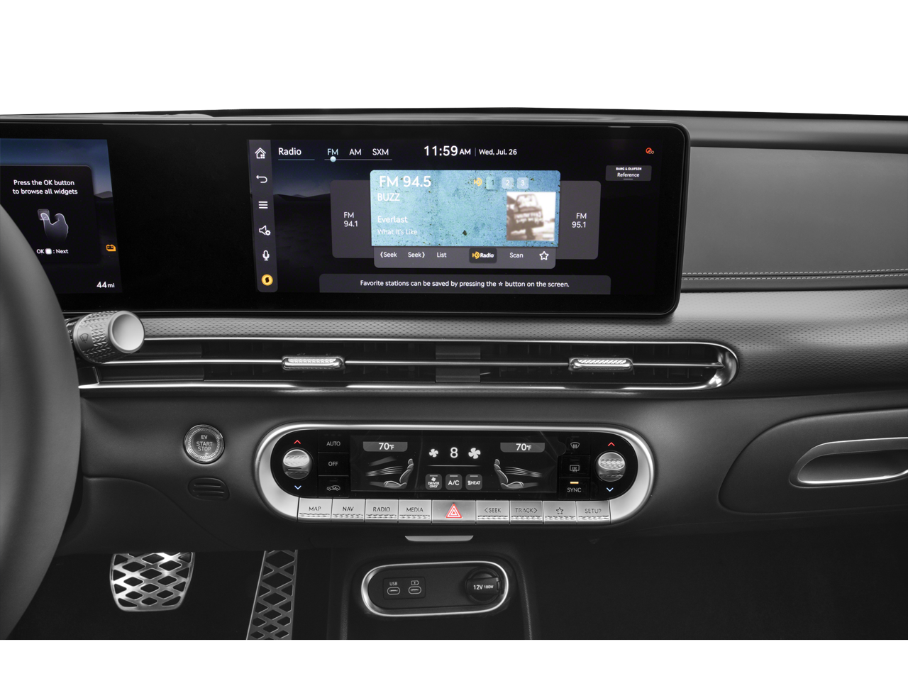 - Radio: AM/FM/HD Bang & Olufsen Premium Audio System -inc: 12.3" HD LCD display screen, navigation system w/cloud connected platform (cloud profiles, connected routing, dynamic voice recognition and OTA updates), SiriusXM Radio w/90-day trial subscription, 17 speakers, 14-channel amplifier w/1,400 watts max output, active noise control, Android Auto and Apple CarPlay, Bluetooth® hands-free phone system w/audio streaming, Genesis Connected Services, USB-C connectivity and Wi-Fi hotspot SiriusXM Radio not available in AK and HI.